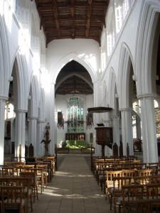 Compare and contrast, as they used to say in exam papers, the mediaeval building with its long chancel and rood screen, with the classical churches of Rome or the baroque churches of Austria. In the former the liturgy is veiled and distant, the people are almost in another room. In the latter the altar is visible, close, and all the participants are in a single space. In the Anglican buildings from the 16th – 19th century it is the pulpit which dominates often with the reading desk. The word is proclaimed to the people in their pews. From time to time – even every Sunday in town churches – some will move from their seats to gather round the Holy Table. The action of the liturgy, which had almost disappeared in the 1552 Prayer Book of Edward VI, is somewhat restored in the 1662 Book where the priest is required to place bread and wine on the Table, and during the Prayer which is now headed Prayer of Consecration, he is to take the bread and break it, and then to take the cup of wine. In the Catholic Mass of the post-Reformation period there is considerable (perhaps too much) action, but at the heart of the liturgy the taking-blessing-breaking-giving action remains intact. The gradual withdrawal of the laity from Communion, which began in the mediaeval period, has now become the norm. It takes the concerted action of Pope St Pius X at the beginning of the 20th century to restore this central act of participation to the Mass.