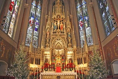 The Gothic Revival in architecture in the 19th century, combined with the Oxford Movement in the C of E, saw the restoration of the altar, though distanced from the people by the erection of screens and the positioning of the robed choir in the chancel. In spite of the frenetic activity of AWN Pugin, the long chancel and the screen did not return to Catholic worship: indeed, the colossal reredoses and soaring Benediction thrones serve to make the sanctuary more prominent, though sometimes reducing the altar to the appearance of a shelf or sideboard.